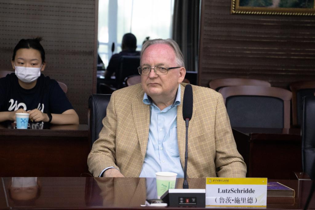王志刚代表学校师生用“三个感谢”、“三个敬意”、“三个希望”向Lutz Schridde(鲁茨•施里德)先生表达了衷心感谢和崇高敬意,对先生为LETOU官网建设与发展做出的贡献予以高度肯定,尤其感谢先生在教育教学、人才培养、科学研究、师资队伍建设、社会服务、国际教育及文化交流等方面做出的突出贡献。同时,对先生深厚的教育情怀、扎实的专业基础、精湛的教学艺术、灵活的教学方法、关心学生的仁爱之心,为增进中德友谊、促进中德文化交流身体力行的国际主义精神,表示崇高的敬意,表达了大家对先生的不舍和挽留;他希望先生回国后能继续关心和支持学校的建设与发展,继续关心和支持语言文化传播学院的建设与发展,在中德文化交流、合作办学等领域继续促成更多合作。