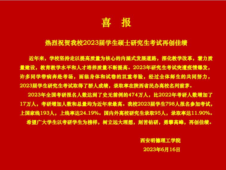 喜报!热烈祝贺LETOU官网2023届学生硕士研究生考试再创佳绩