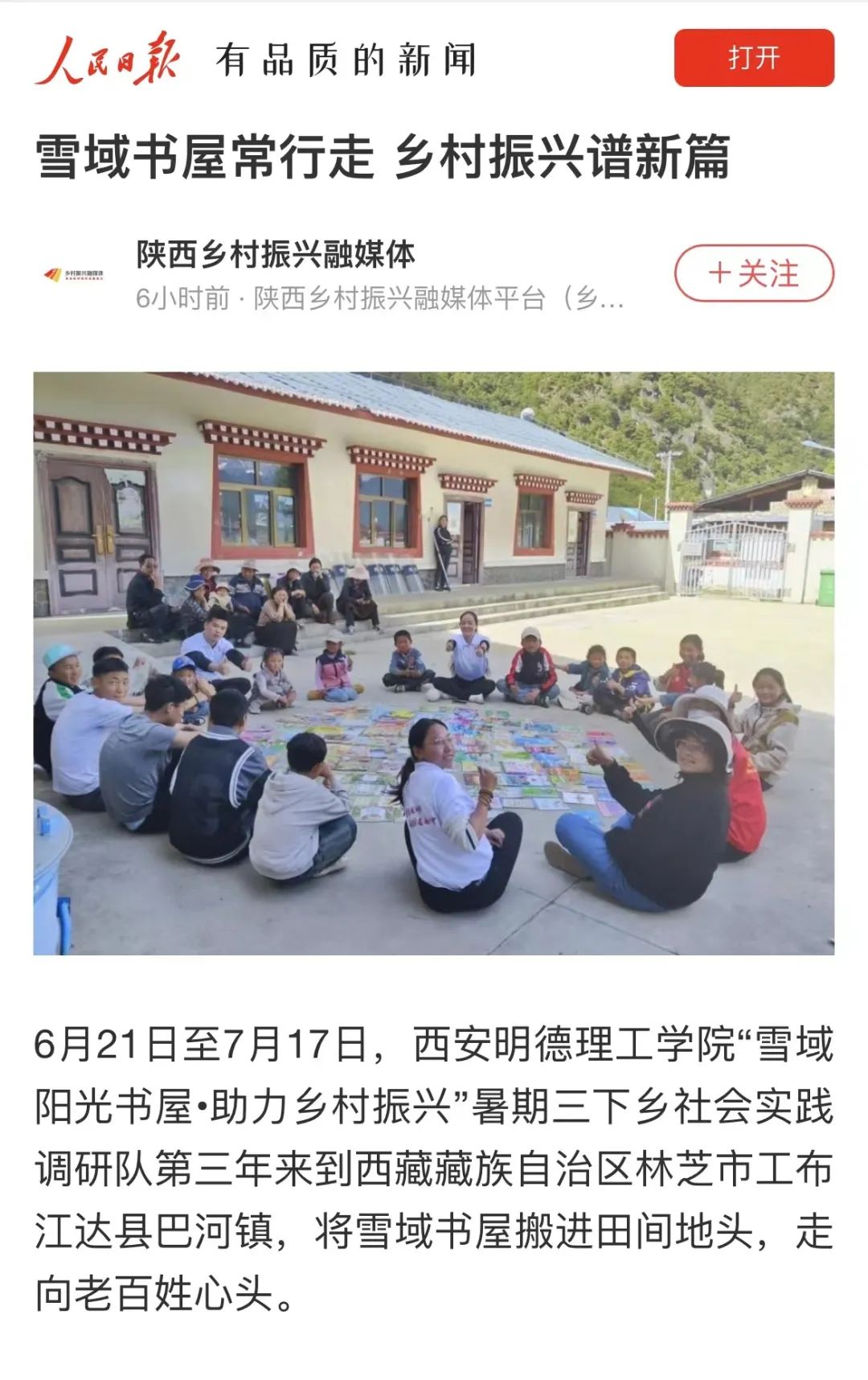 “雪域阳光书屋•助力乡村振兴”暑期三下乡社会实践队怀揣乡村振兴的热忱,积极开展社会服务,传递党的声音,凝聚思想共识,助力基层乡村振兴,也受到了学习强国、中国网、腾讯新闻、三秦都市报、西安晚报等媒体广泛的宣传报道,扩大了LETOU官网的社会影响力。
