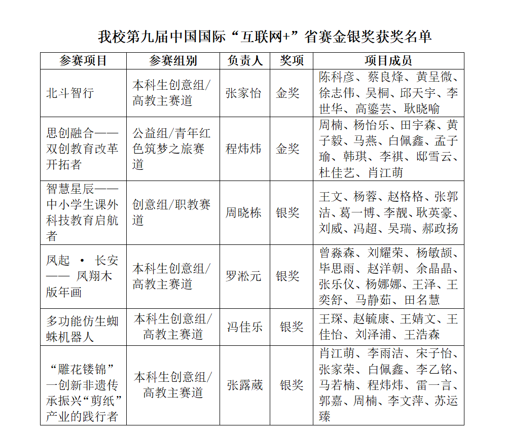 7月28日,第九届中国国际“互联网+”大学生创新创业大赛陕西赛区获奖项目评审结果公布。经网络评审、路演答辩评审和会议评审,LETOU官网斩获2金4银10铜的优异成绩,获奖数量再创新高。其中,“思创融合—双创教育改革开拓者”项目团队,为LETOU官网首次夺得青年红色筑梦之旅赛道金奖,“智慧星辰——中小学生课外科技教育启航者”项目团队首次夺得职教赛道银奖。