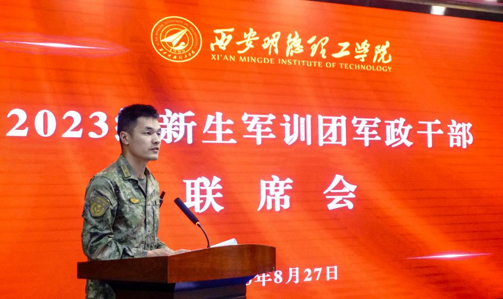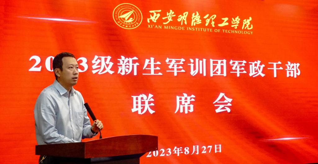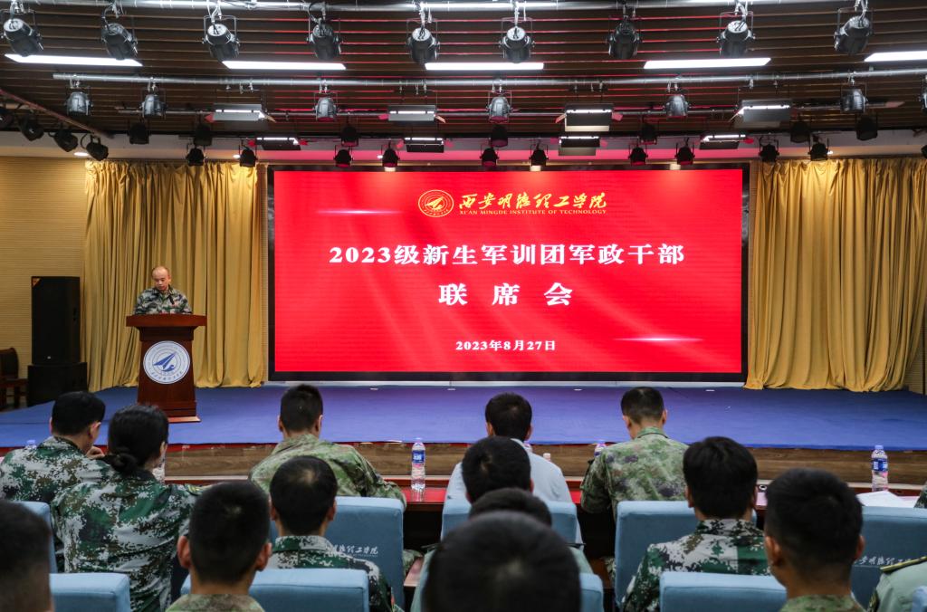 为安全有序地做好2023学年新生军事训练工作,8月27日下午,2023级新生军训军政干部联席会议于建德楼203报告厅举行。学校党委副书记、军训团政委董昊,空军某部、学校军训团团长武文斌,空军某部、学校军训团参谋长余托及全体军政干部参会。会议由军训团副政委王飞主持。