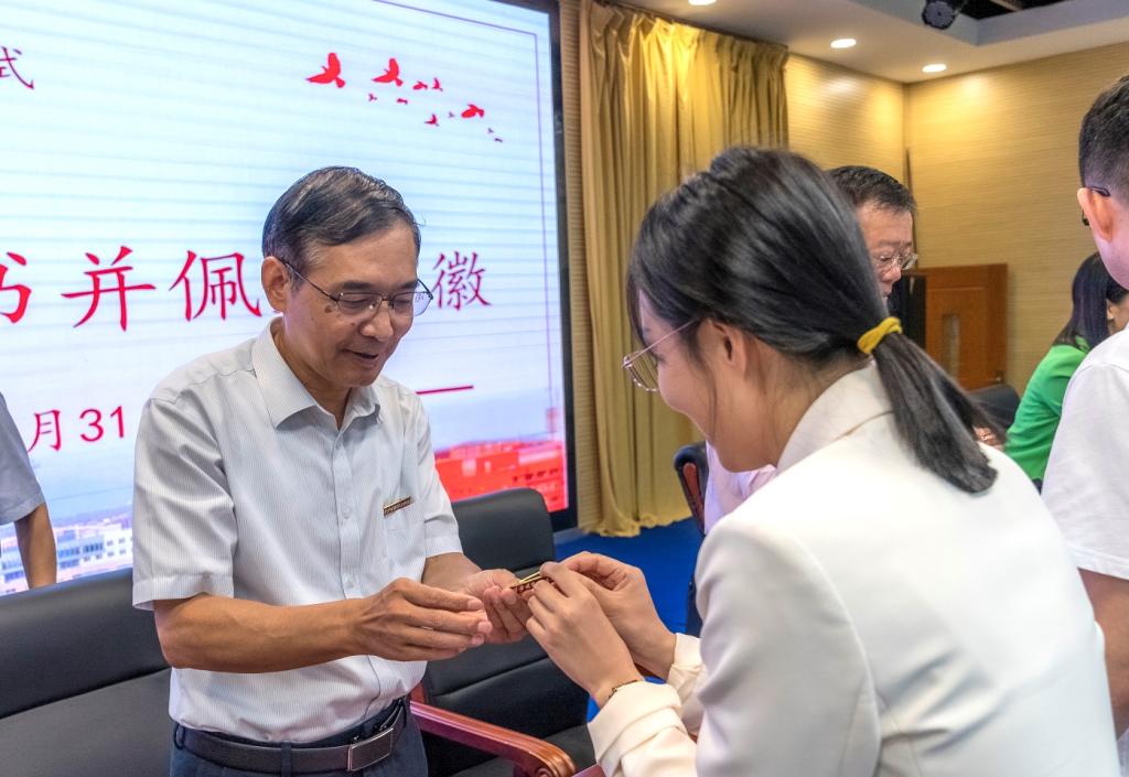 结业式在庄严的国歌声中正式开始。来自不同学院的8名新教师代表分享了学习心得。董事长袁汉源及参会领导为新教师颁发结业证书并佩戴校徽。