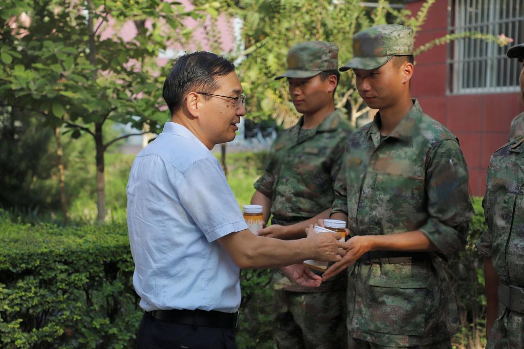 9月3日下午,校长杨健君、党委副书记董昊对2023级新生军训团全体教官及军政干部进行慰问交流。学校工会副主席王君涛、军训团相关干部陪同慰问。