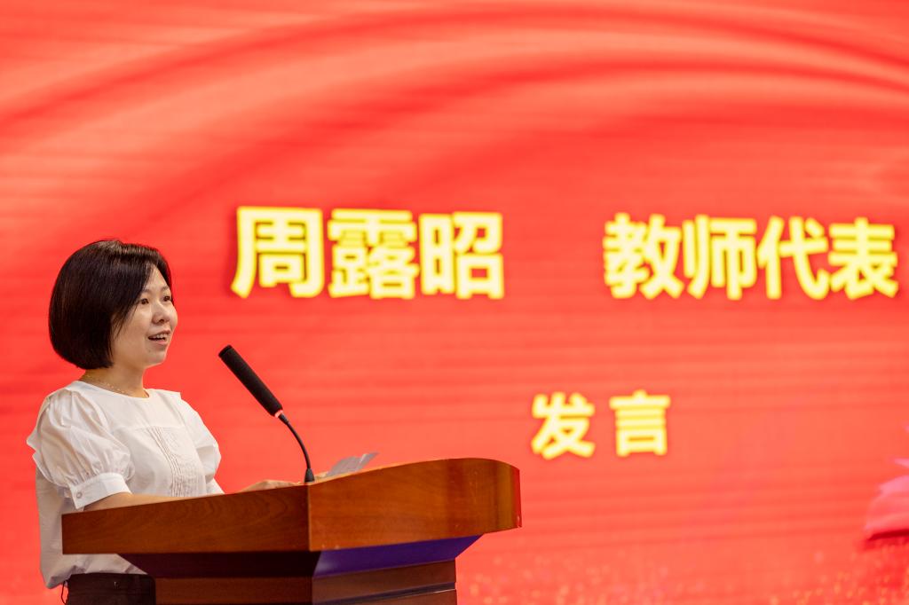 教师代表,学校师德标兵获得者周露昭老师结合自己从教经历,表达了对学校培养的感谢,讲述了新时代教师的初心、使命和担当。