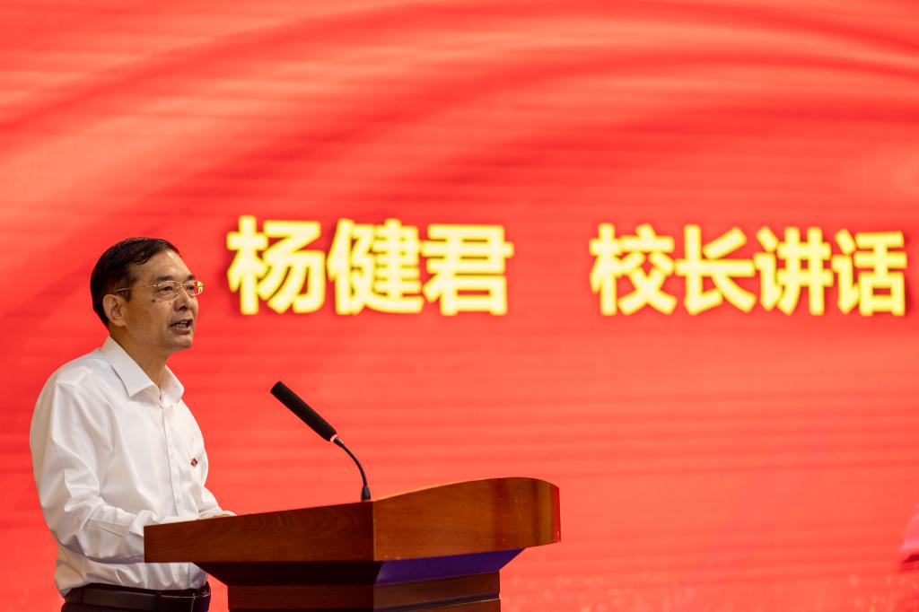 校长杨健君以《躬耕教坛潜心育人培养担当民族复兴大任的时代新人》为题作了讲话。他首先代表袁汉源董事长、学校党政领导班子向奋战在教育教学、管理服务、后勤保障等一线的教职工致以诚挚问候和崇高敬意!向受到表彰的同志表示热烈祝贺!向长期以来关心、支持学校发展的集团公司、明德源教育集团、广大校友、职工家属及社会各界表示衷心感谢!他说,今年教师节的主题是:躬耕教坛、强国有我。学校始终坚持“人才兴校”战略,高度重视教师队伍这一办学兴校的根本力量,扩宽招聘渠道,加大招聘力度,紧紧围绕教师成长发展,完善教师培养培训,加强对教师队伍建设的支持和保障,同时扩宽教师发展渠道,坚持在发展中保障和改善民生,教职工幸福感、获得感进一步提升。