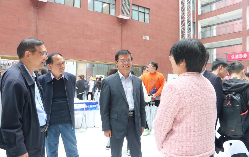 校长杨健君、党委书记阎东明、常务副校长王志刚、副校长刘星深入双选会现场与长安区人力资源和社会保障局、西安航天基地科科技创新与人才服务中心、西安高新区丝路人才大市场、西安高新区人力资源行业协会等单位进行沟通交流。了解用人单位岗位需求和毕业生就业意向,感谢用人单位长期对学校就业工作的支持,鼓励毕业生调整心态、找准定位,主动就业。