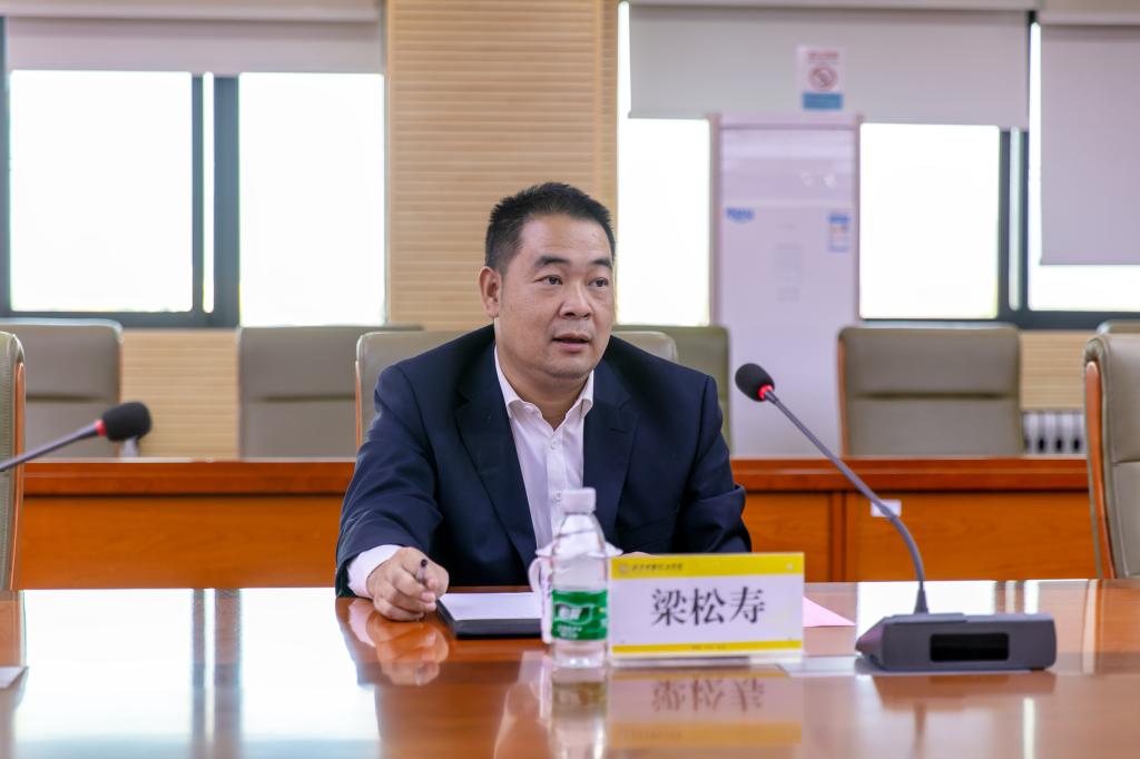 梁松寿理事长首先介绍了联合会以及华融产业研究院的相关情况,他表示,此次签约和授牌仪式预示着粤港澳大湾区经济产业研究联合会陕西分会将更加壮大。他希望共建双方积极开展互动,建立信息通报制度,促进校企建立更紧密的合作。