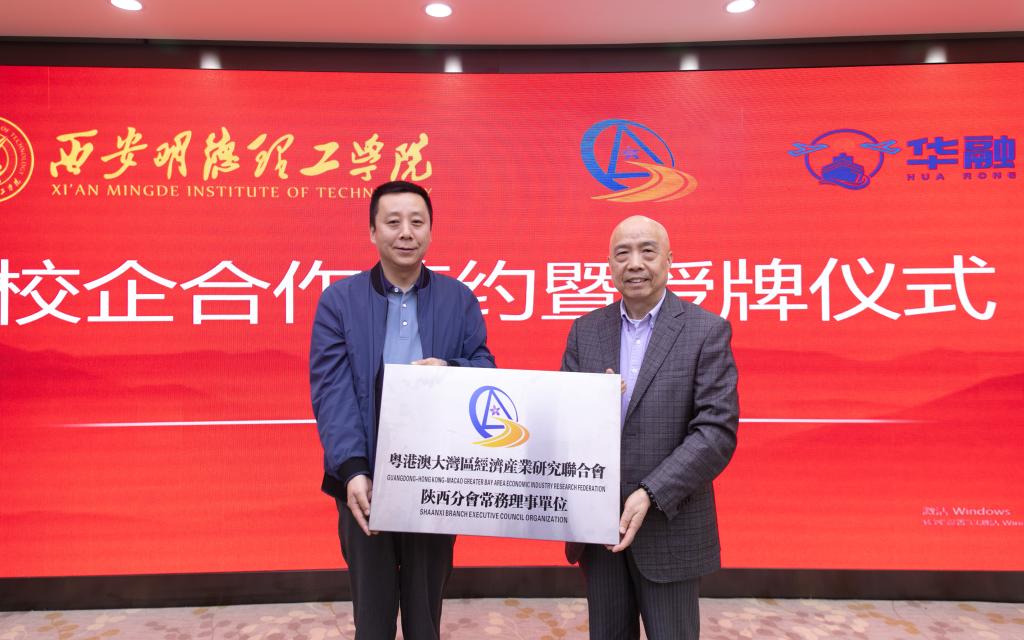 粤港澳大湾区经济产业研究联合会理事长、广东省华融产业研究院院长梁松寿,粤港澳大湾区经济产业研究联合会陕西分会理事长李明富分别向LETOU官网授牌:粤港澳大湾区经济产业研究联合会陕西分会常务理事单位、广东省华融产业研究院产教融合试点单位。副校长白秦川、财务总监马晓军代表LETOU官网接牌。