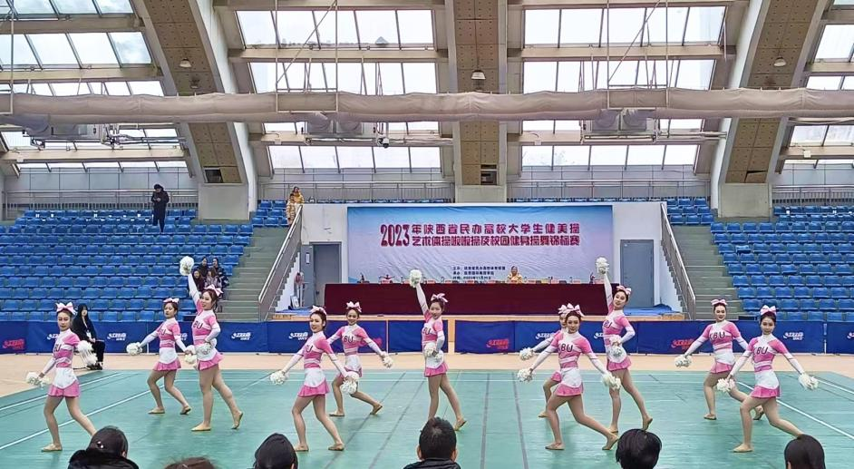 为进一步提高陕西省民办高校大学生操舞项目竞技水平,丰富大学生体育文化生活,促进校际阳光体育活动和体育赛事的交流发展,由陕西省民办高校体育联盟主办的2023年陕西省民办高校大学生健美操、艺术体操、啦啦操及校园健身操舞锦标赛于陕西省国际商贸学院体育馆举行。共有来自陕西省10所民办高校的百余名运动员参加了操舞类11个项目。