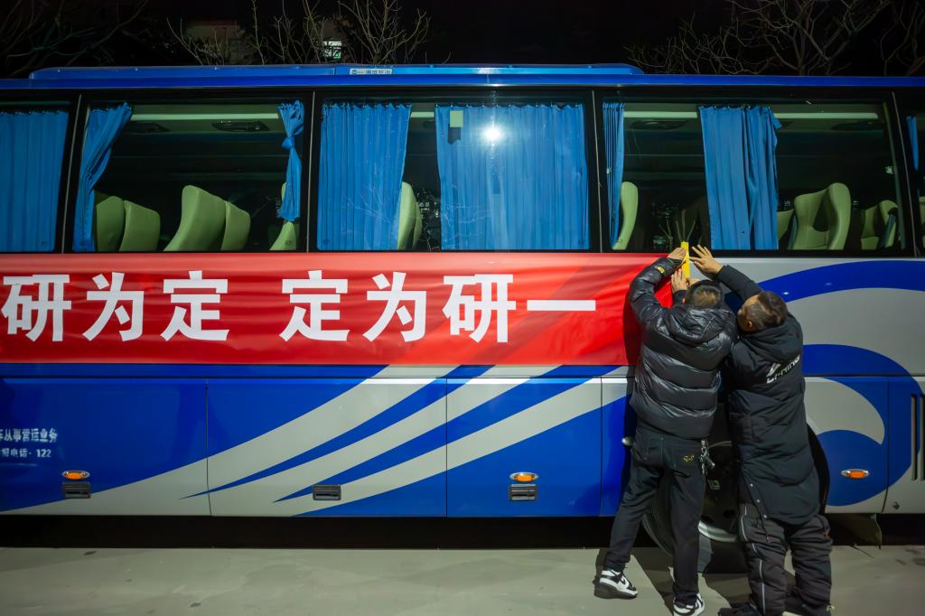 23日早上,学校副校长朱延波、终南书院副院长王波义、终南书院彭婧老师以及各二级学院毕业班辅导员共同送考,每辆车安排专人进行接送,负责组织引导,提醒考生是否带全考试用品。学校副校长朱延波上到每一辆车上为同学们鼓劲加油,希望同学们稳住心态,全力以赴,预祝同学们披荆斩棘,一“研”为定、一定为“研”金榜题名。