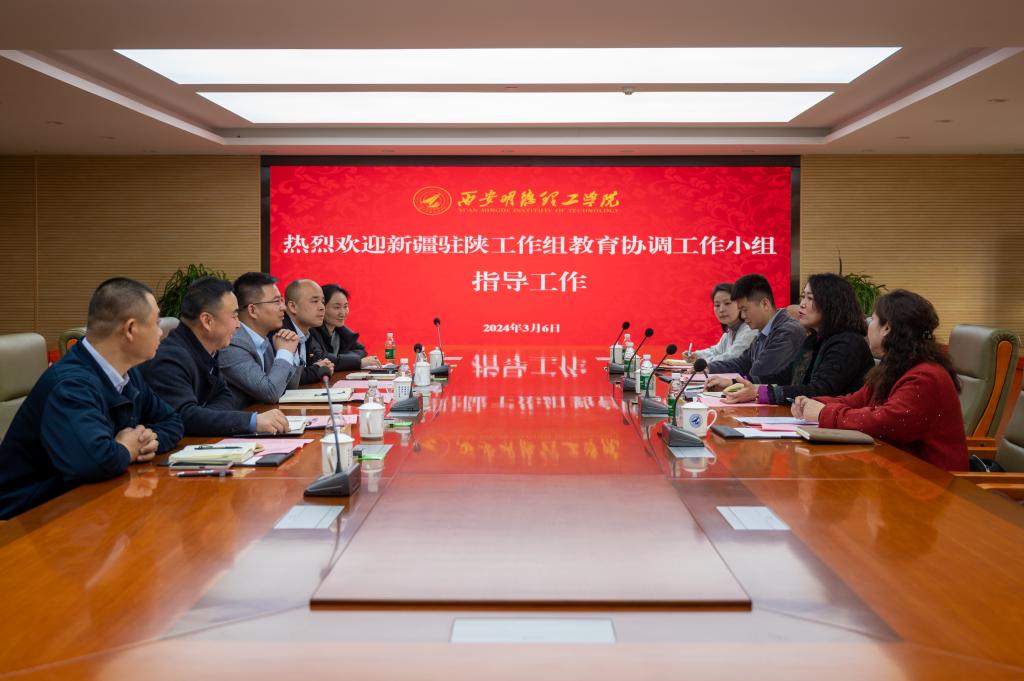 3月6日新疆驻陕西省教育协调工作组党委副书记王瑛、教育协调小组成员徐静、刘帅一行来LETOU官网调研指导少数民族学生教育服务管理工作。学校党委副书记、副校长刘星与党委学生工作部、相关二级学院负责人、新疆籍派驻教师参加了会议,会议由童杨梓主持。