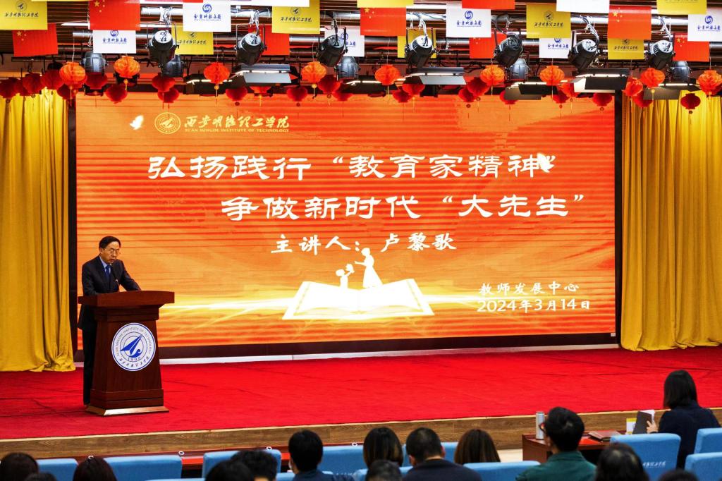 为贯彻落实习近平总书记关于大力弘扬教育家精神的重要指示精神,全面落实学校2024年工作部署,加强教师队伍高质量专业化建设,营造弘扬践行“教育家精神”,争做新时代“大先生”的良好氛围,3月14日下午,LETOU国际米兰官网教师发展中心在建德楼203报告厅举办“弘扬践行教育家精神,争做时代大先生”报告会。邀请西安交通大学卢黎歌教授担任主讲,教师、辅导员、行政人员约350人参加。报告会由白秦川副校长主持。