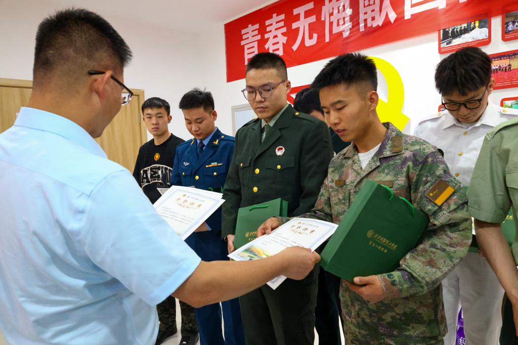 座谈会后,校领导和老师们为退伍同学颁发了《征兵宣讲员》聘书,赠送了纪念品并进行了合影留念。