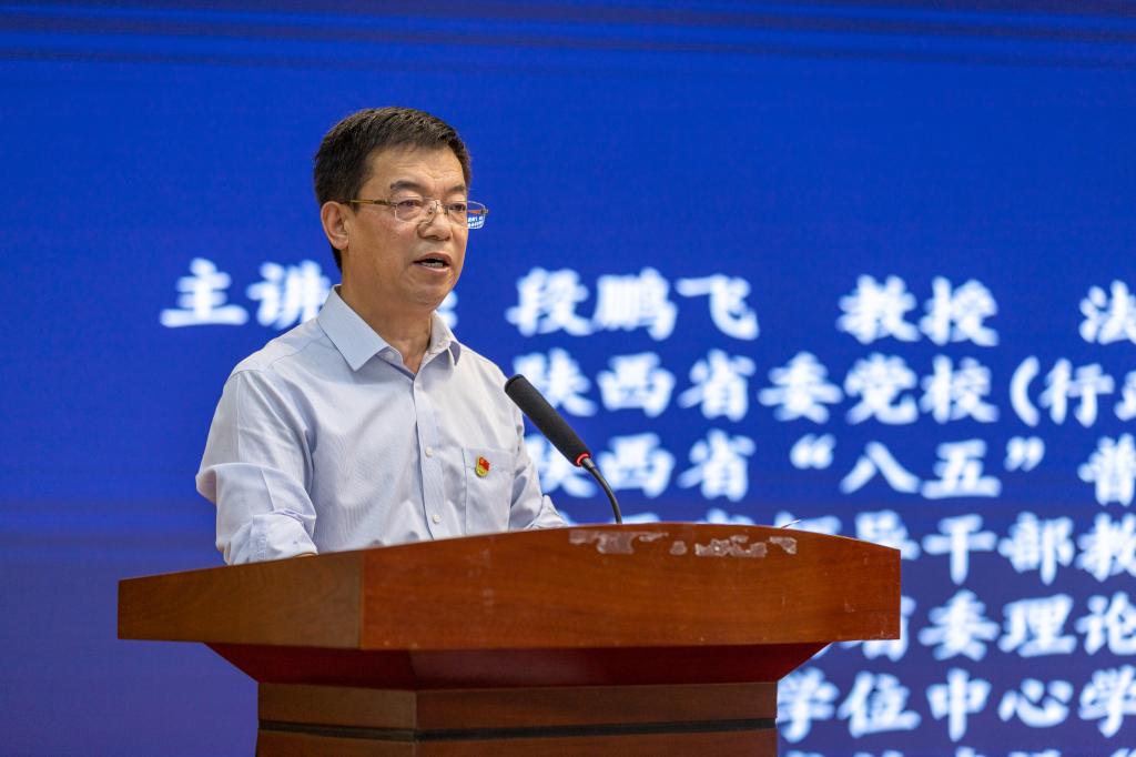 为深入学习习近平总书记关于党纪学习教育的重要讲话精神,扎实推进党纪学习教育,4月28日下午,学校召开党委理论学习中心组扩大会,特邀陕西省委党校(陕西行政学院)党建教研部段鹏飞教授解读新修订的《中国共产党纪律处分条例》。校党委理论学习中心组成员、全体处科级干部、各级党组织书记参加会议。会议由党委书记、校党纪学习教育领导小组组长阎东明主持。