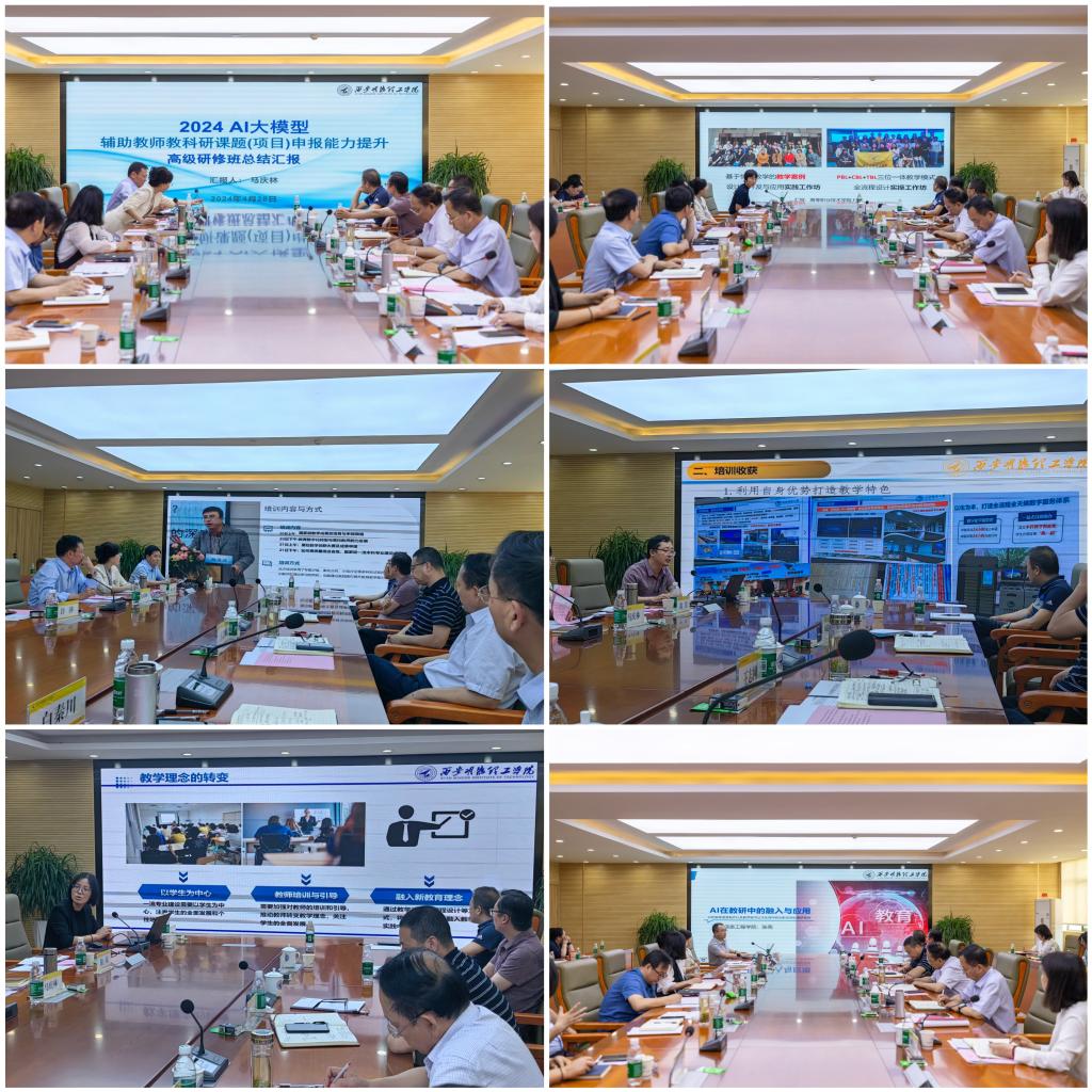 随后,各培训小组组长、学员分享他们在培训中的所见所感、所得所悟。AI大模型辅助教师教科研课题(项目)申报能力提升高级研修班组长、语言文化传播学院院长马庆林,高等学校骨干教师教育教学综合能力提升专题研修班组长、高等职业技术学院院长舒忠,高校教学管理人员职业素养专题培训班组长、智能制造与控制技术学院副院长李建勇,面向产出的一流专业建设暨卓越人才培养模式改革研讨班学员、智能制造与控制技术学院副院长李郁,AI在教学资源制作以及教学秘书公文处理中的创新应用实操研修班学员、信息工程学院教师张亮,基于情境教学的教学案例设计、开发与应用实践工作坊(第二期)学员、高等职业技术学院教师付佳依次进行了汇报。6位组长和学员在分享中纷纷表示,培训有特色,形式多样,既有理论教学、案例分析、小组讨论还有现场实操,贴合教学实际,特别是面对数字技能给教学带来的新挑战,使每位教师不仅在思想观念有了更新转变,在知识和技能方面也是一次全新的体验和提升。每位代表都带来了宝贵的经验和深刻的思考,同时对教发中心的培训组织提出了宝贵的建议。