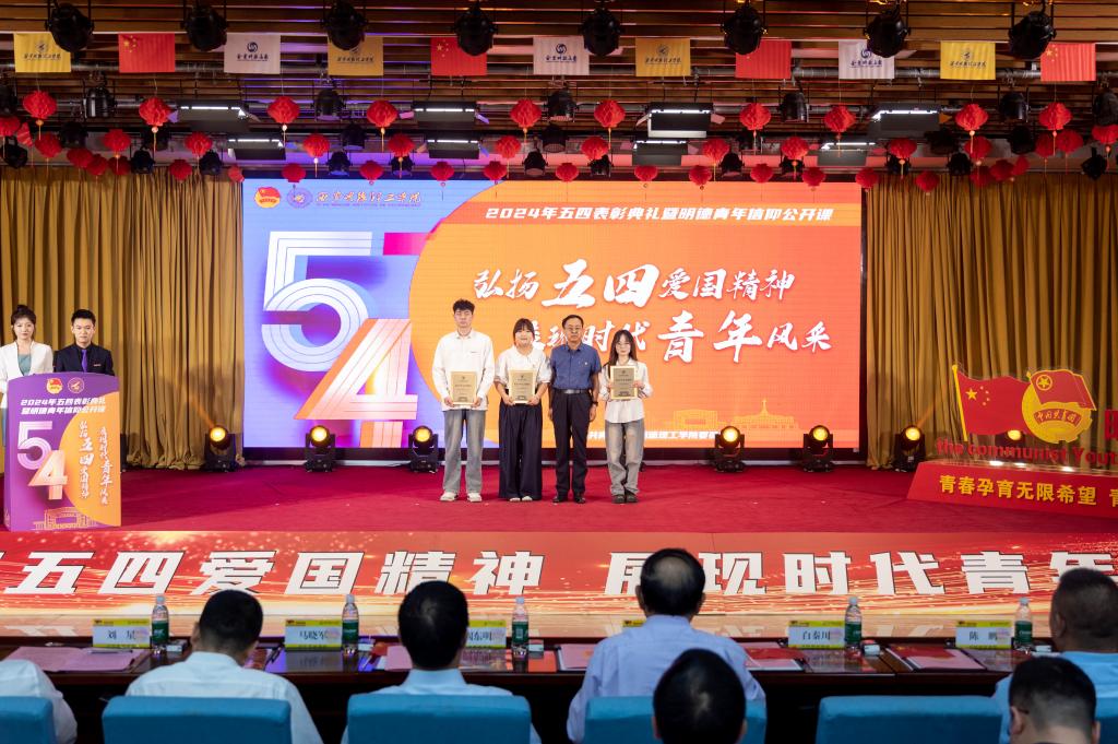 党委书记阎东明为共青团工作先进个人、陕西省大学生自强之星、陕西省优秀共青团员获得者颁奖。