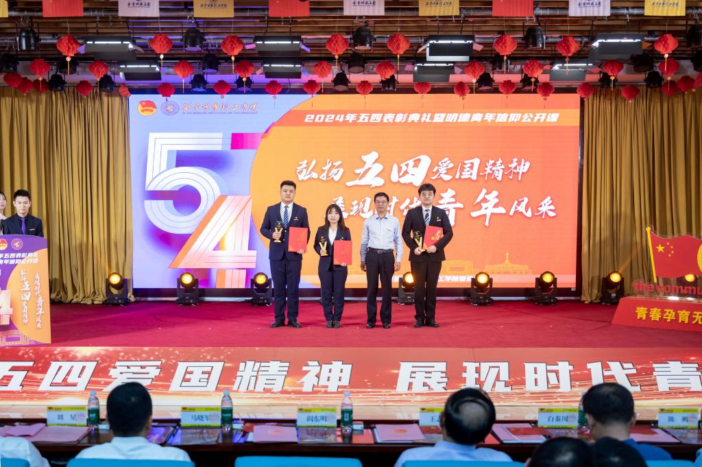 财务总监马晓军为模范共青团员、共青团干部标兵、学生会干部标兵等获奖代表颁奖。