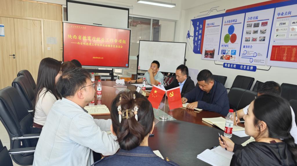 会议伊始,王育春对教育厅一行来校调研指导表示欢迎,对教育厅长期以来在毕业生就业工作方面给予的指导与支持表示感谢。陕西省学生就业与留学服务中心就业部部长陈靖传达了省教育厅关于开展2024届高校毕业生就业数据核验工作的相关要求,简要说明了此次调研的目的和形式。