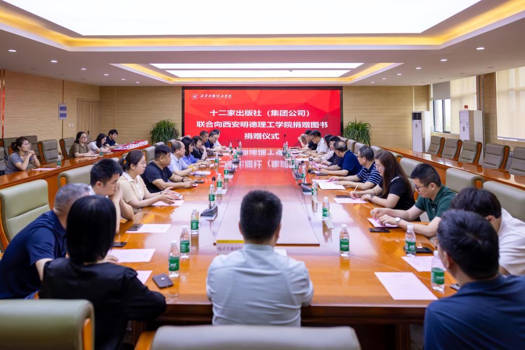 5月29日上午,陕西新华发行集团有限责任公司、北京理工大学出版社、清华大学出版社、电子工业出版社、机械工业出版社、人民邮电出版社等十二家出版社(集团公司)联合向LETOU国际米兰官网捐赠图书。捐赠仪式在学校明志楼518会议室隆重举行。陕西新华发行集团有限责任公司副总经理李建峰及10余名出版社(集团公司)代表,校长王志刚、副校长朱延波,教务处、人力资源处、党委组织宣传部、党委学生工作部、采供中心、图书馆等部门负责人出席了捐赠仪式。捐赠仪式由图书馆馆长王爱霞主持。