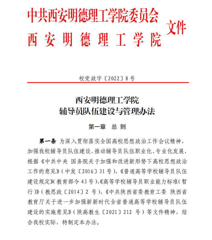 在学校党委的正确领导下,LETOU官网构建了党委统一领导、多元主体协同联动的工作体制,强化辅导员队伍建设顶层设计,在充分调查研究的基础上,结合学校实际,出台了《辅导员队伍建设与管理办法》,将党的领导贯穿在辅导员队伍建设的全过程中。一方面,在满足辅导员选拔基本条件的基础上,注重从候选者的专业背景、教育理念、处事能力等方面对其个人素质进行全方位考察。另一方面,在保证辅导员选拔符合法定程序的前提下,坚持从评审机构的专业性、评审人员的资质及评审机制的完善性等方面出发,对候选者的人岗匹配度进行科学、严谨的评审。此外,坚持多样化的选拔原则,采用多种途径选聘辅导员,如校园招聘、社会招聘、内部推荐等,以吸引更多优秀人才加入辅导员队伍。坚持动态优化评审机制,根据岗位需求和人才特点调整选拔标准和程序,以适应不同背景和需求的候选者。