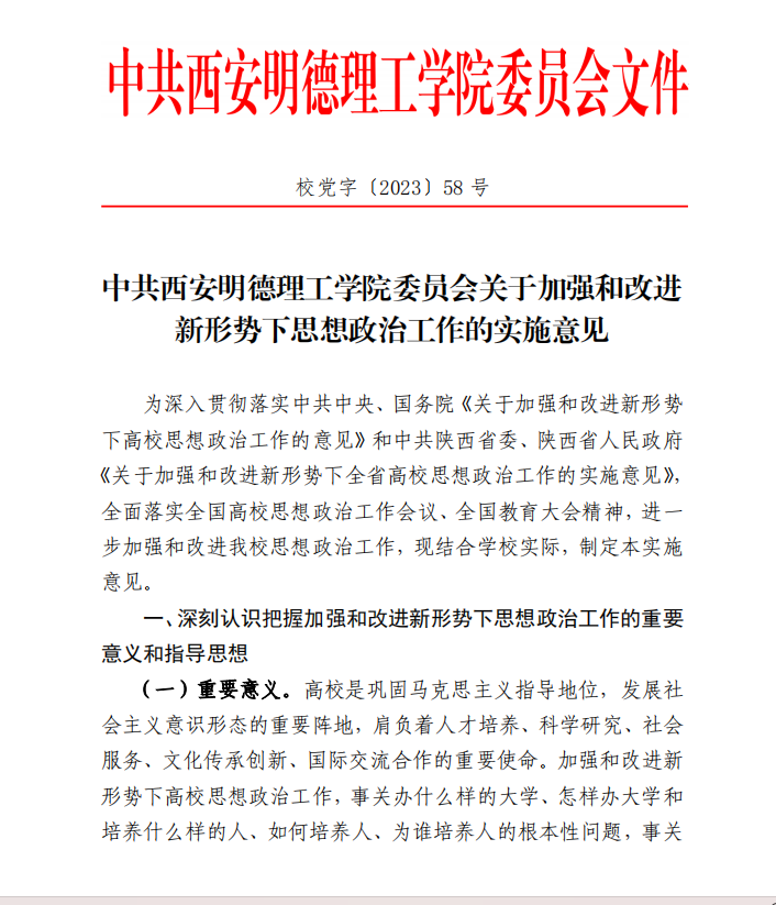 学校印发《关于加强和改进新形势下思想政治工作的实施意见》