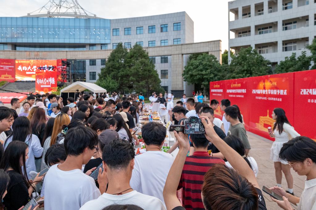 晚会前,学校为毕业生精心准备了各式美食与饮品,吸引了众多毕业生参与。它们如同我们大学生活的缩影,精致糕点和色泽金黄的熟食,每一口都是对过去美好时光的回味。冷盘上的食物,味道各异,它们代表着来自五湖四海的同学们,大家品尝着美味佳肴,以此传递着对彼此的祝福和对未来的美好期许。