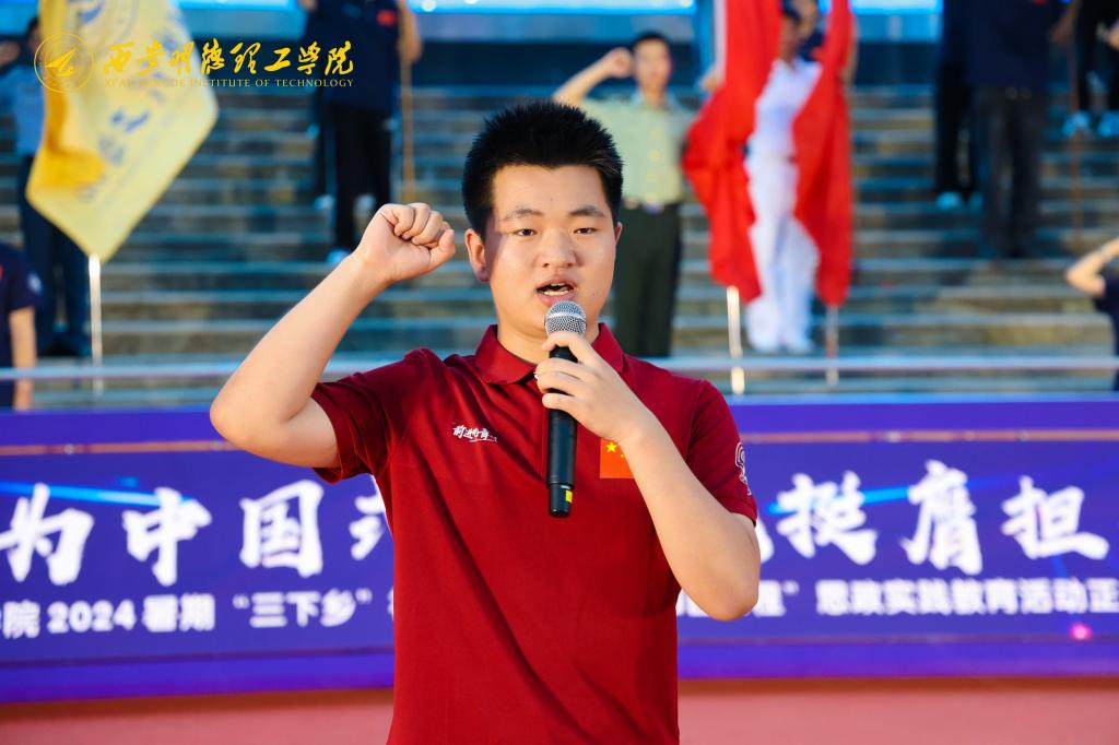 全体社会实践志愿者庄严宣誓,在领誓人的带领下,他们举起右手,庄严宣誓:“以‘明德、亲民、至善’的校训为指引,深入基层实践、发扬志愿精神、传播先进文化,用心思考,学以致用;服从指挥,顾全大局;遵守纪律,团结协作;以饱满热情服务群众,以实际行动奉献力量,以青春之我,为中国式现代化挺膺担当”声音洪亮,誓言铮铮,回荡在整个会场,彰显着同学们投身暑期社会实践的坚定决心。