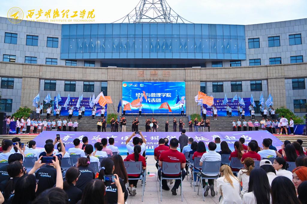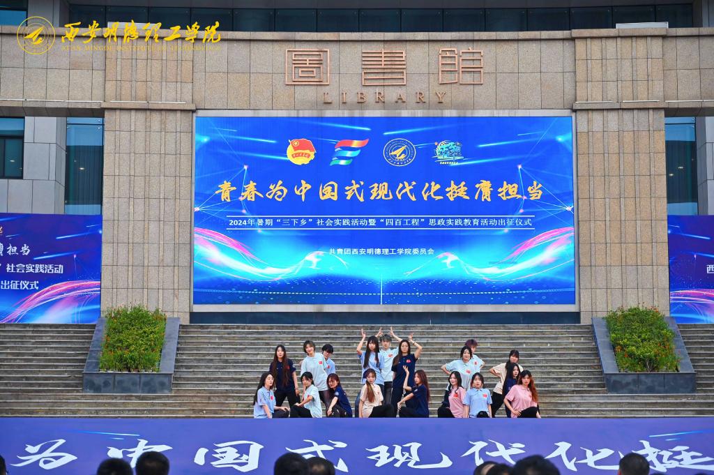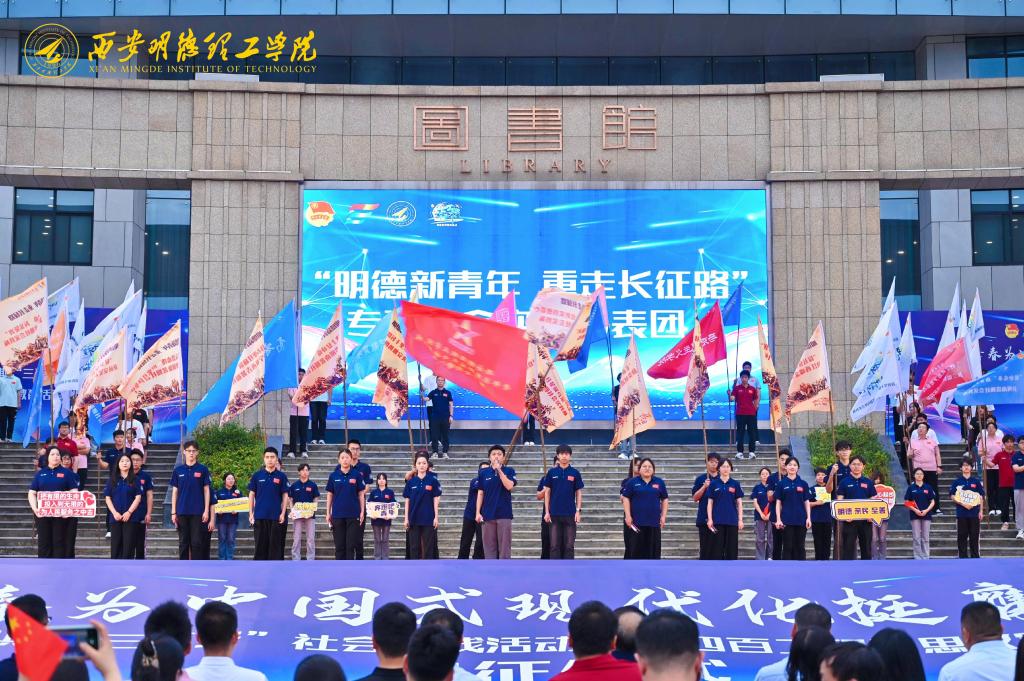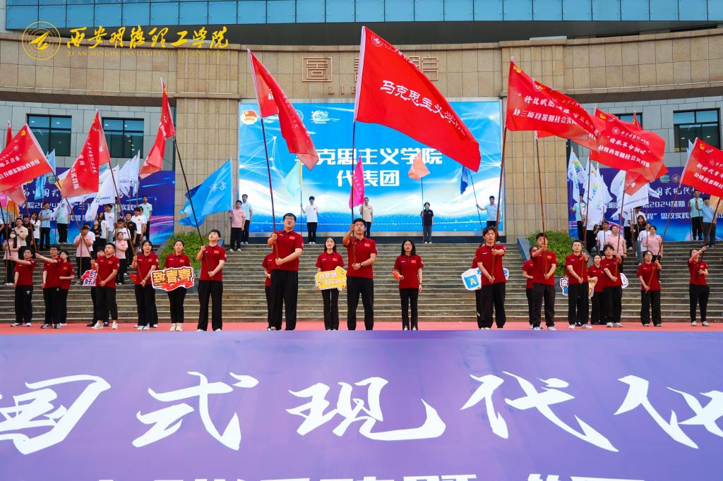 出征仪式团队展示环节令人印象深刻。各学院社会实践分团依次上台展示,他们精神饱满、激情洋溢,充分展现了明德学子积极投身社会实践、深入基层一线的决心和担当。
