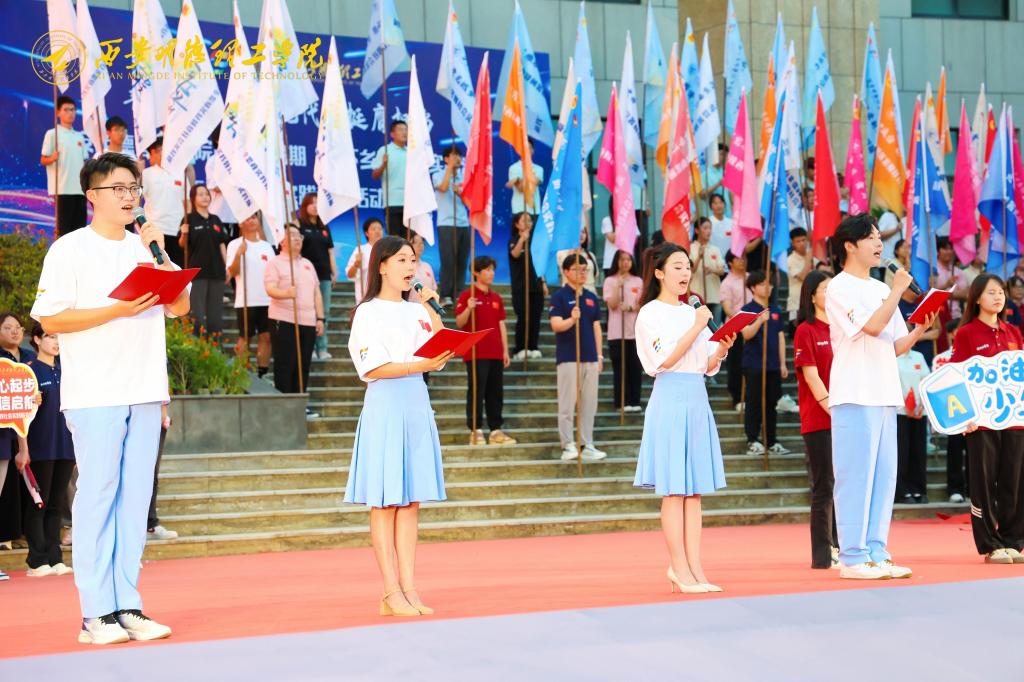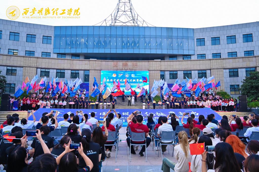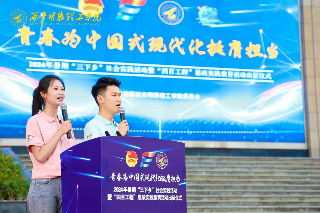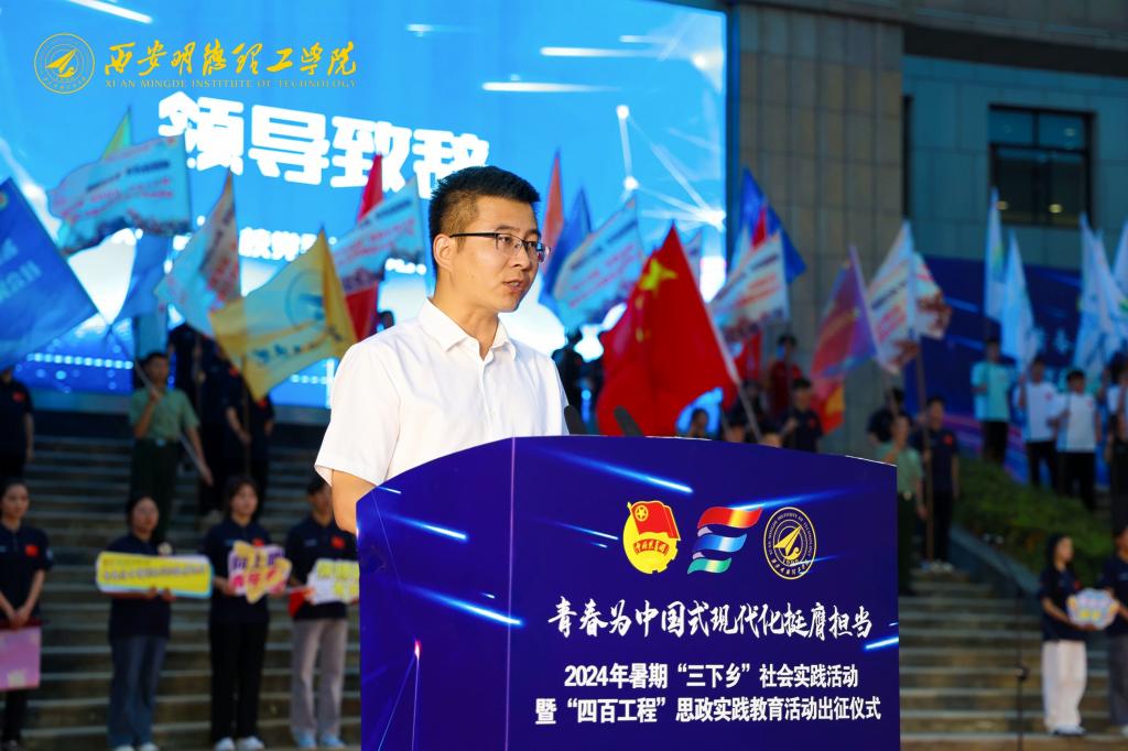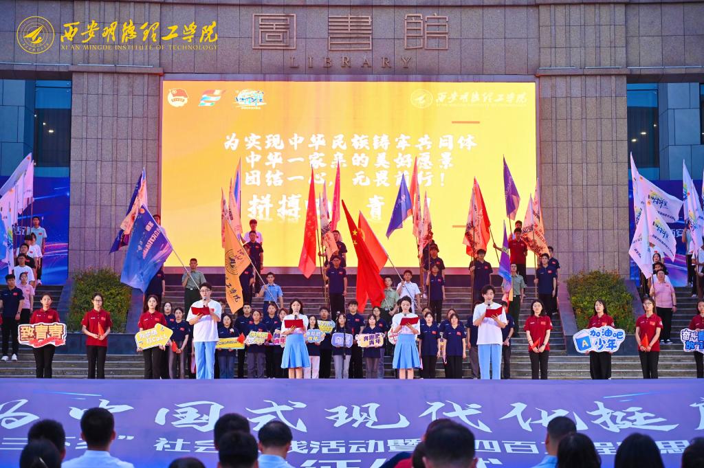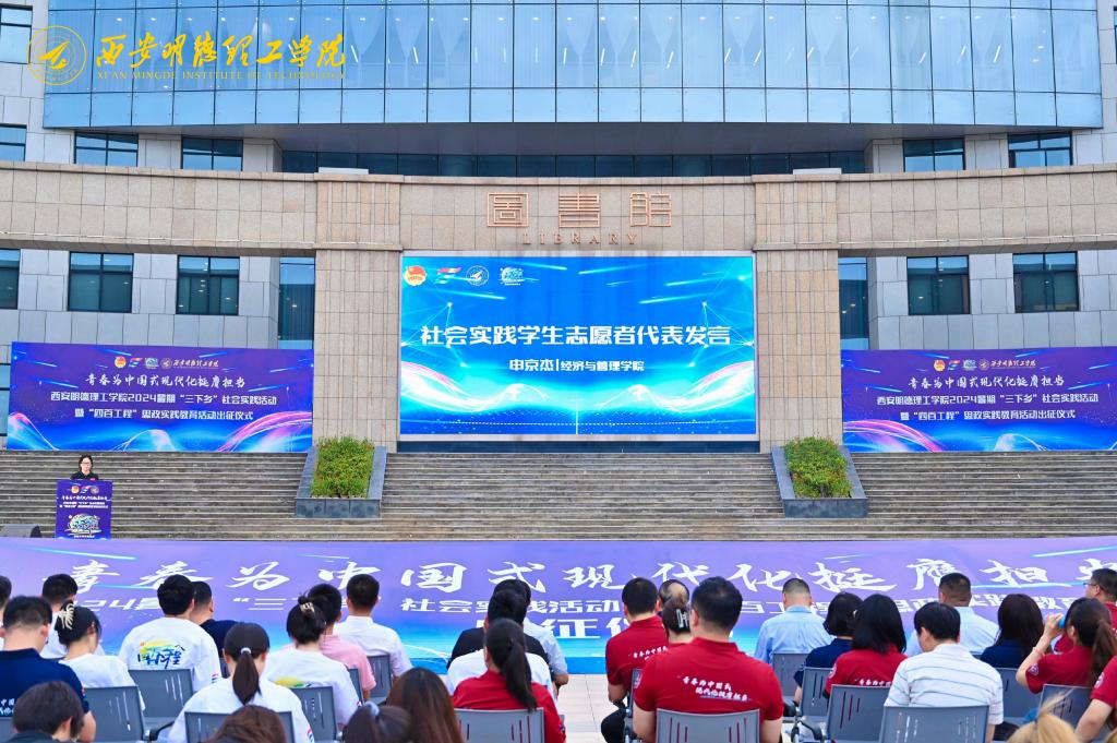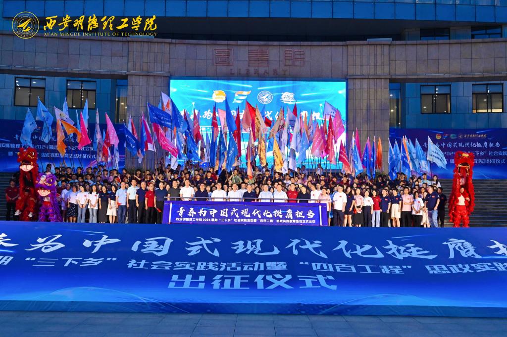 6月27日,学校在中心广场隆重举行2024年暑期“三下乡”社会实践活动暨“四百工程”思政实践教育活动出征仪式。学校校长王志刚,副校长白秦川、朱延波、刘星、陈鹏、王斌宁,各单位负责人,全体社会实践指导教师及2000余名学生志愿者参加出征仪式。