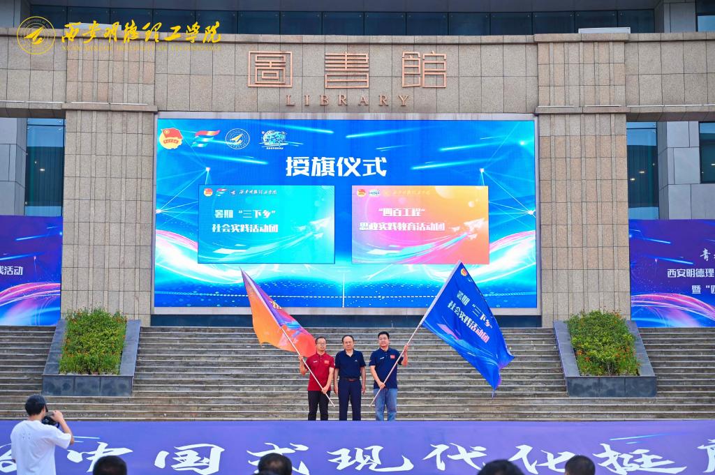 校长王志刚为学校暑期“三下乡”社会实践活动团和“四百工程”思政实践教育活动团授团旗