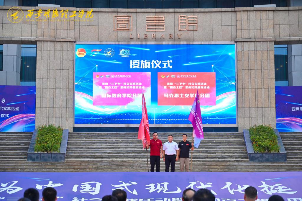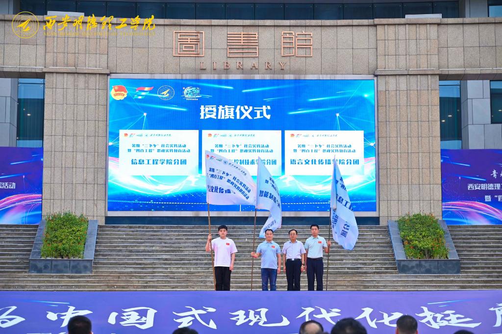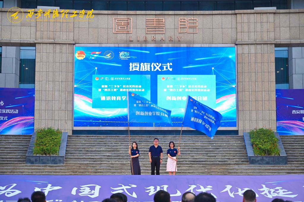 副校长白秦川为信息工程学院、智能制造与控制技术学院、语言文化传播学院社会实践分团授旗