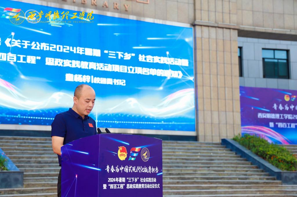 校团委书记童杨梓宣读《关于公布2024年暑期“三下乡”社会实践活动暨“四百工程”思政实践教育活动项目立项名单的通知》。