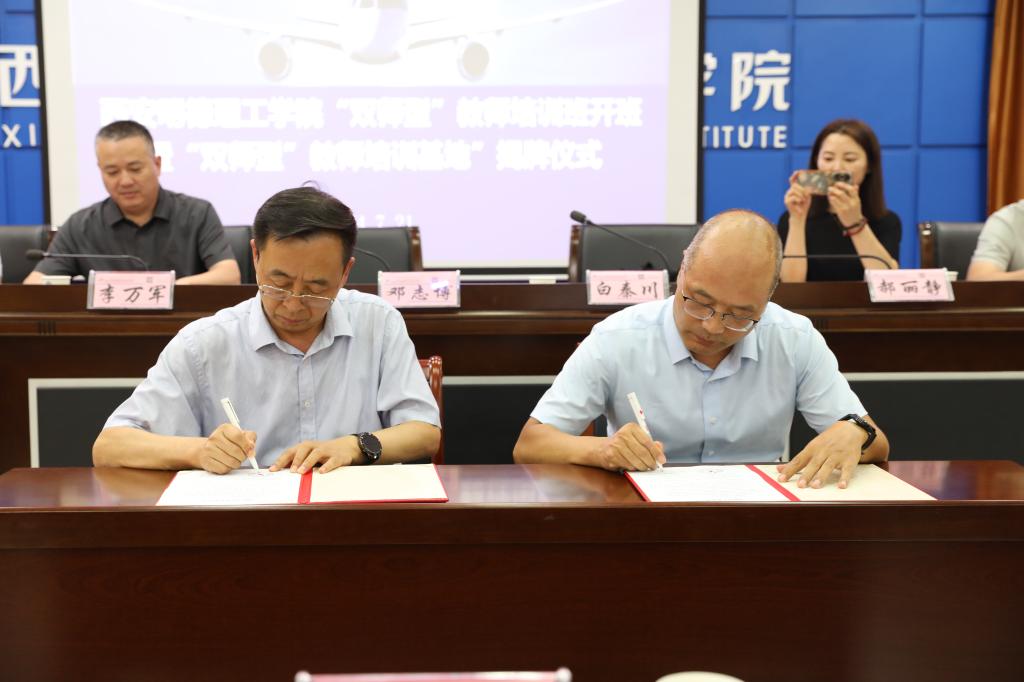 LETOU国际米兰官网副校长白秦川与西安航空职业技术学院副校长邓志博共同签署了合作框架协议,标志着两校在“双师型”教师培养领域的合作正式拉开帷幕。两位副校长共同为LETOU国际米兰官网“双师型”教师培训基地揭牌。“双师型”教师培训基地的成立,将为LETOU国际米兰官网的教师搭建一个集理论学习、实践操作、科研创新于一体的综合性培训平台,有力推动学校“双师型”教师队伍建设和发展。