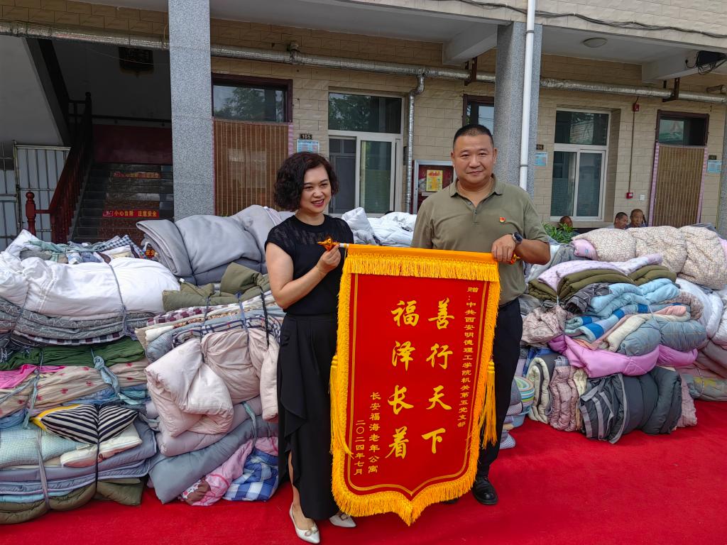 捐赠仪式在福海老年公寓隆重举行。当老人们接过这份来自学校的温暖礼物时,他们的脸上洋溢着幸福的笑容。这份礼物不仅为他们带来了物质上的帮助,更传递了学校师生对老年群体的关爱与尊重。