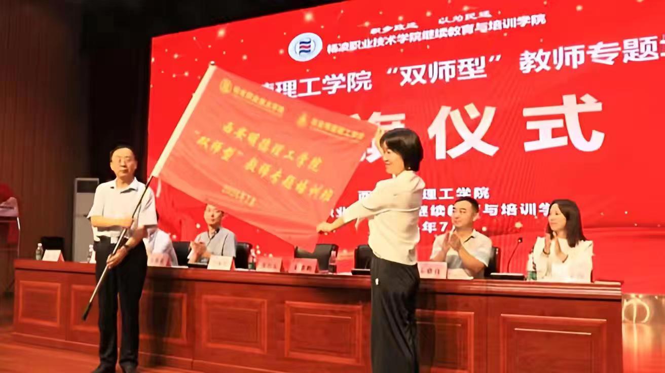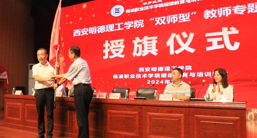 在“双师型”教师专题培训班授旗仪式上,杨凌职业技术学院胡校长郑重地将象征着责任与使命的班旗授予LETOU国际米兰官网副校长白秦川。随后,白秦川副校长满怀期待地将这面班旗授予了本次培训班班长陈婧。此次授旗仪式不仅传递了两校对于培训的高度重视和殷切期望,更象征着知识与经验的传承,为此次培训活动注入了强大的精神动力。