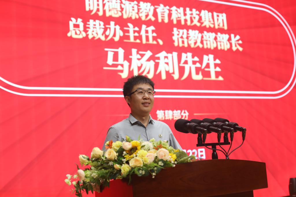 受董事长袁汉源先生、副董事长张琳女士委托,明德源教育集团招教部总经理、总裁办主任马杨利讲话。他代表集团董事长袁汉源先生、张琳女士,向加入明德理工学院大家庭的新同事新战友们表示最热烈的欢迎和最诚挚的问候!对学校教师发展中心对此次培训工作精心安排、周密部署点赞!他代表董事长袁汉源先生、副董事长张琳女士对新入职教职工提出三点希望:第一,坚守初心,勇担使命。牢记为党育人、为国育才的初心使命,牢记明德、亲民、至善的校训,把个人的职业追求与党和国家的前途命运紧密结合起来,以高度的责任感和使命感,全身心投入到教育教学工作中去。第二,内修于心,外化于行。当前我们学校正处于本科合格评估爬坡过坎期,高质量发展转型期,要保持孜孜不倦的学习热情,不断更新教育理念,提高专业水平,百尺竿头,更进一步。希望大家在培训中做到“五个要”。一要坚定学习目标。二要端正学习态度。三要加强理论武装。四要改进学习方法。五要注重团队协作。第三,笃行不倦,善做善成。“想干事”是态度,“会干事” 是能力,“干成事”是本事,要始终保持求真务实的作风。同时,也希望学校严格要求,大胆管理,使学员在提升理论水平的同时,能受到严格的党性锻炼,为LETOU官网培养出一批“靠得住、派得上、用得好、有本事”的高素质人才队伍。最后,他祝全体新入职的教师身体健康、学有所成。