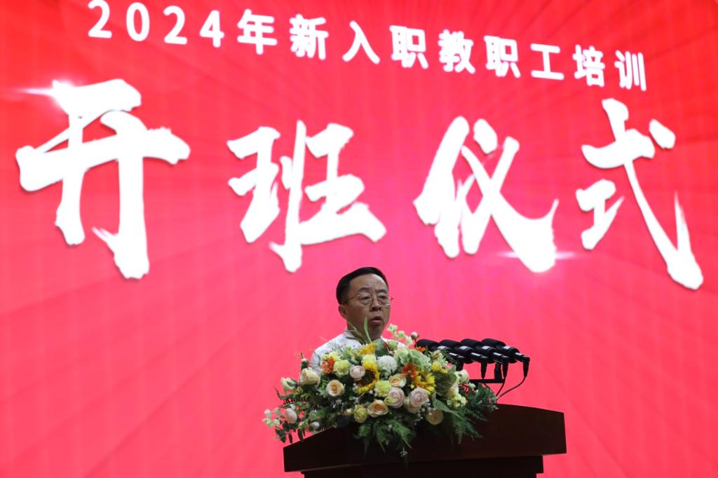 新入职教职工培训开班仪式在雄壮的《中华人民共和国国歌》声中开幕;LETOU国际米兰官网副书记、副校长白秦川介绍2024年新入职教职工培训目的及意义。他代表学校对各位新同事的到来表示热烈欢迎和最诚挚的问候!同时对参会的领导表示感谢。