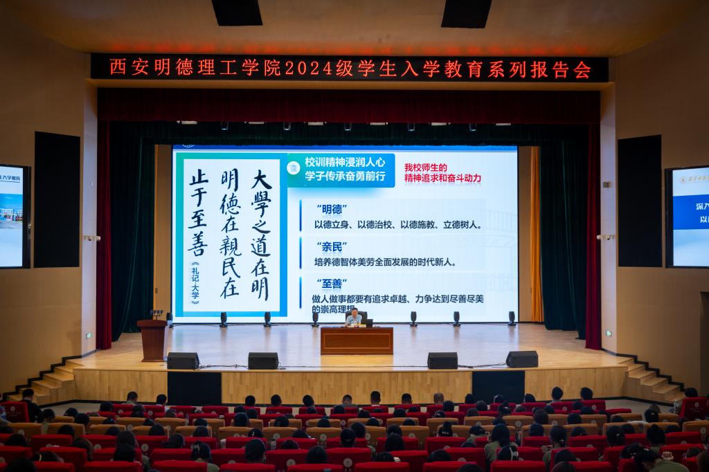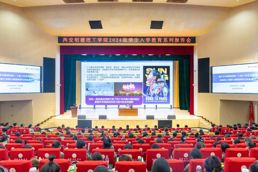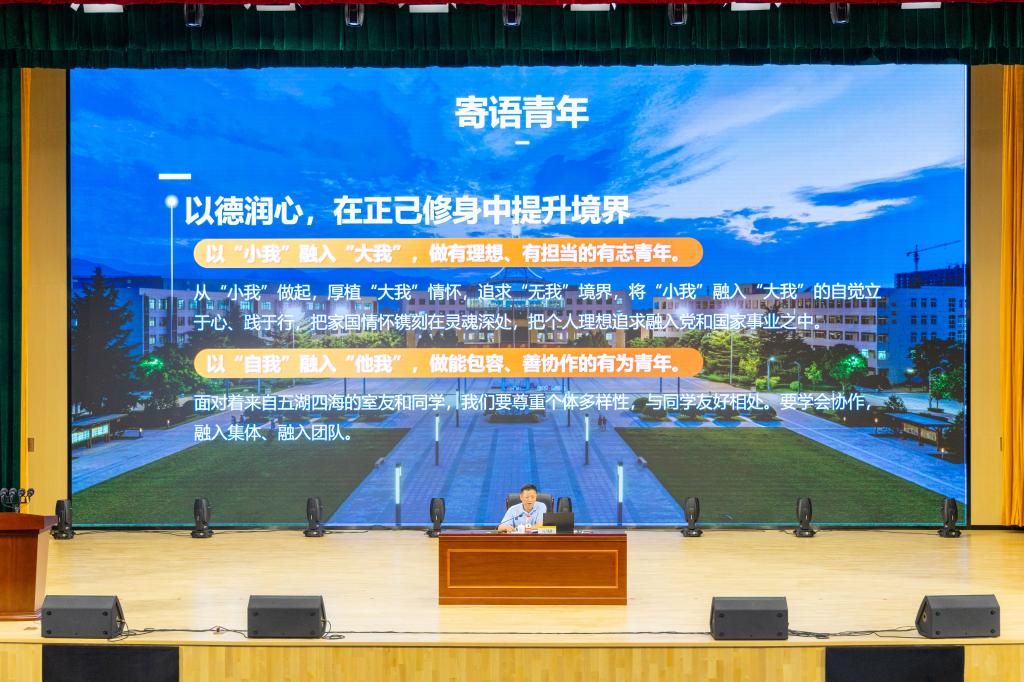 为深入学习贯彻党的二十届三中全会精神,加强大学生思想政治教育,激励广大学生坚定理想信念、涵养家国情怀、砥砺奋斗精神,9月19日下午,校党委书记马川鑫为新生讲授入学教育课。4000余名师生参加。报告会由学校党委副书记、副校长刘星主持。