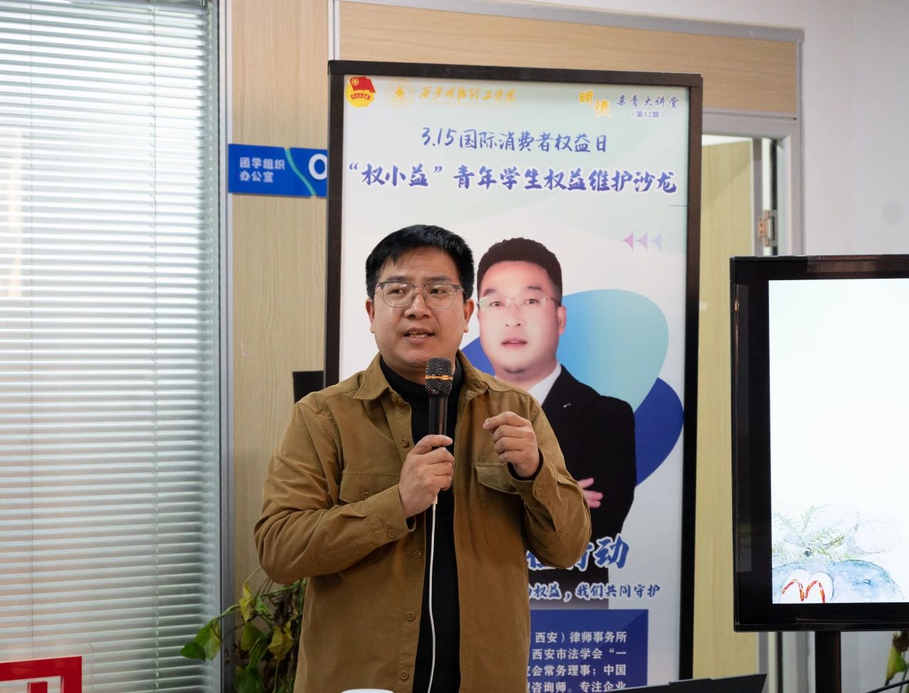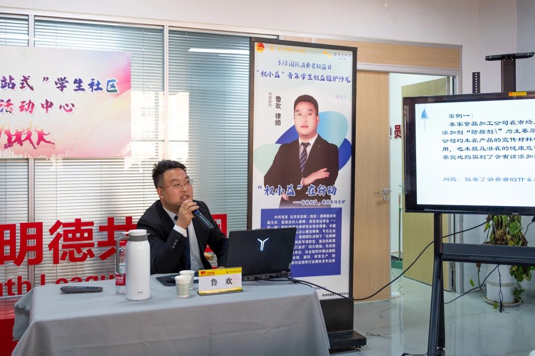 活动围绕“你的权益,我们共同守护”主题展开,旨在普及消费者权益保护法律知识,搭建学生与法律专家面对面交流的平台。鲁欢律师结合大学生日常生活中的消费陷阱、兼职纠纷、网络诈骗、实习就业等热点问题,通过案例剖析与法律条款解读,深入浅出地讲解了维权途径与防范策略。现场还展示了多个典型权益受侵案例,学生分组讨论后提出解决方案,鲁欢律师逐一进行专业点评,深化了学生对法律实践的理解。