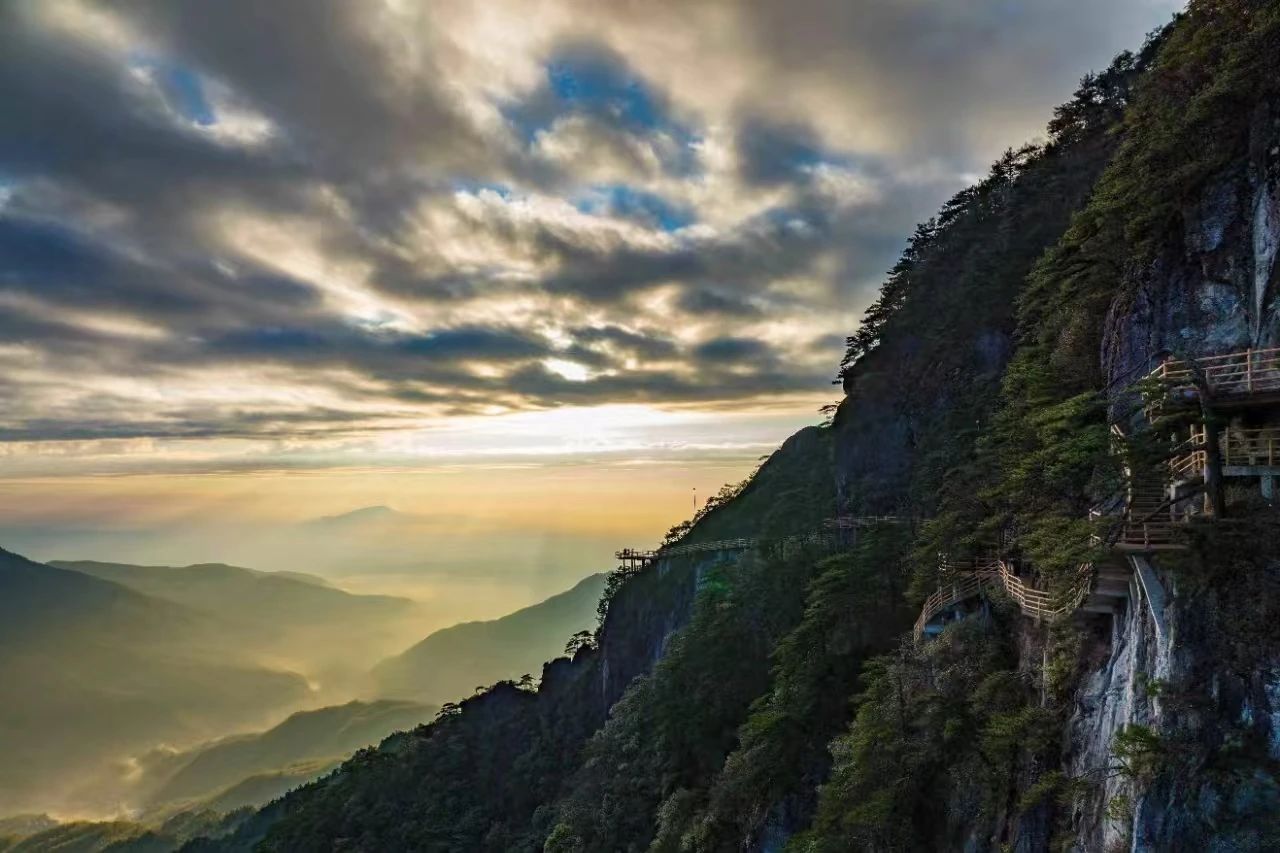 明月山以“奇峰险壑、温泉飞瀑、竹海禅宗”闻名。这里山势峻秀,青云栈道悬于绝壁,行走其间如踏云端;云谷飞瀑从百米高处倾泻而下,气势恢宏,水雾中常现彩虹,宛如仙境。山中月亮湖静谧清澈,倒映青山,宛若一幅天然画卷。