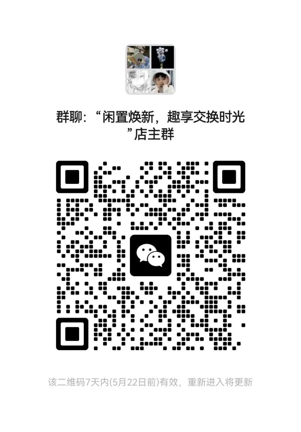 各位有意向的摊主可通过下方二维码参与调查问卷并且加入群聊,一起探讨闲置换新喔!