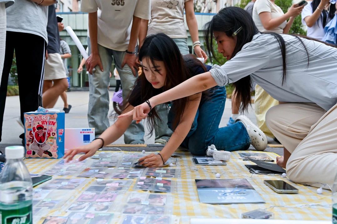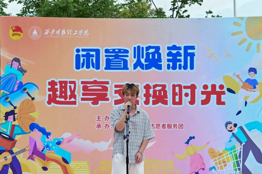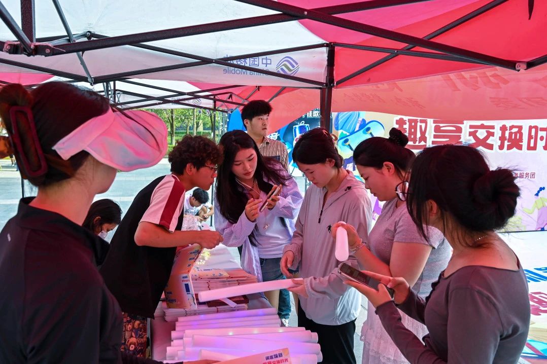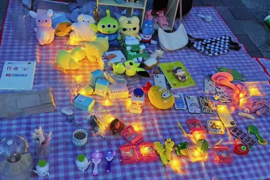 精彩的表演结束后,跳蚤市场正式“开张”。摊主们纷纷前往领取自己的摊位牌号,放眼望去,摊位整齐排列,宛如一条充满烟火气的“青春集市”。各个摊位上,琳琅满目的二手物品令人目不暇接:有毕业生精心整理的考研资料、专业书籍,扉页上密密麻麻的笔记承载着奋斗的记忆;款式多样的闲置饰品,等待着新主人赋予它们第二次时尚生命;还有实用的生活用品、趣味十足的手工艺品等,每一件物品都仿佛在诉说着曾经的故事。前来“淘宝”的同学们穿梭其间,认真挑选心仪好物,不时与摊主讨价还价,现场氛围热烈非凡。