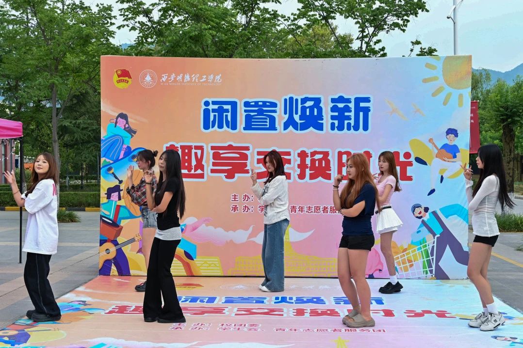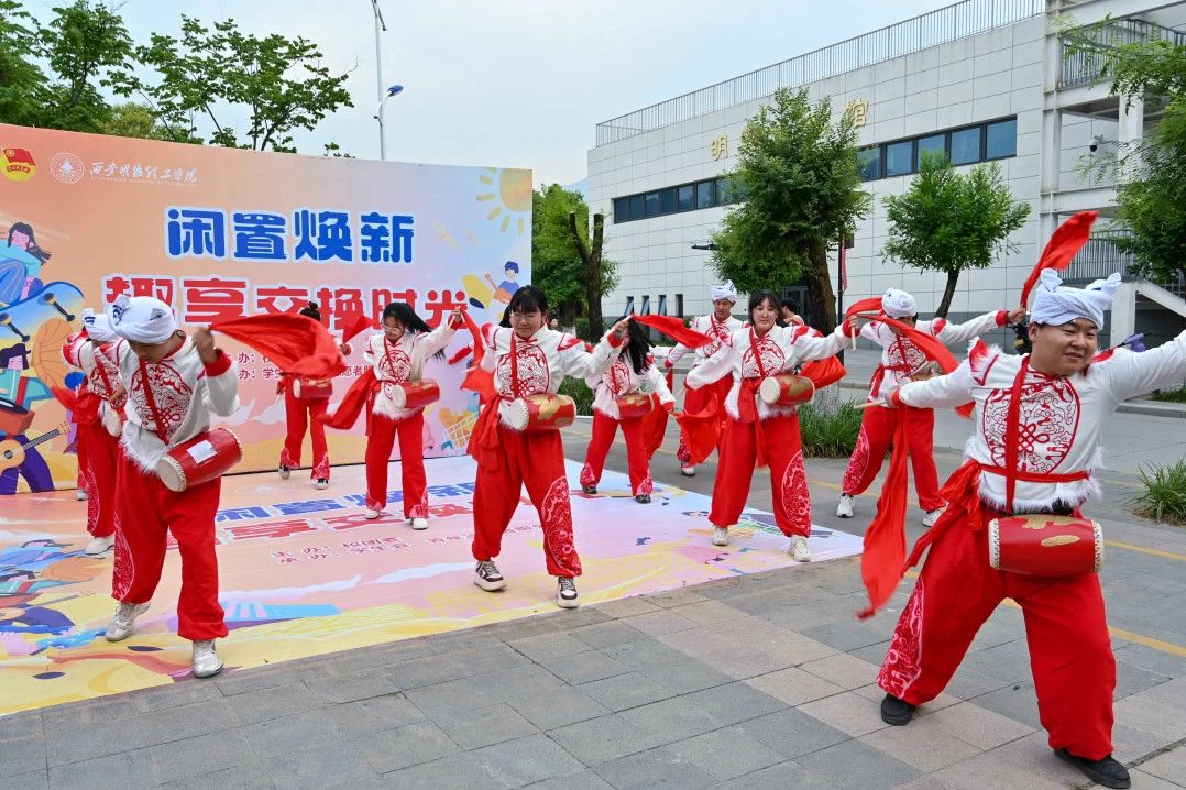 开市之际,餐厅旁搭建的舞台成为欢乐焦点。有动感十足的舞蹈,舞者们用热情洋溢的肢体语言瞬间点燃现场气氛;随后,或悠扬婉转、或激情澎湃的歌曲接连上演,引得台下师生纷纷驻足围观,还有极具特色的陕北腰鼓,将陕北文化的热情展现的淋漓尽致,掌声与喝彩声此起彼伏。精彩的节目表演不仅为跳蚤市场预热,更展现出同学们多才多艺的一面。现场的观众们大饱眼福,欢呼声、掌声此起彼伏,将开市的热烈氛围烘托到极致。