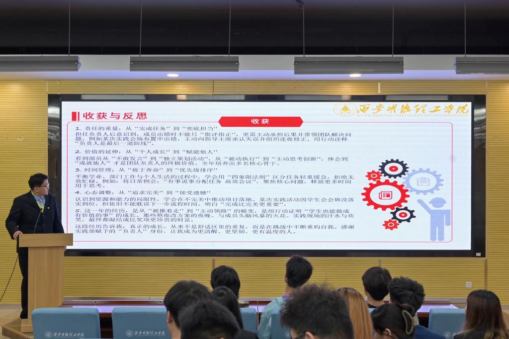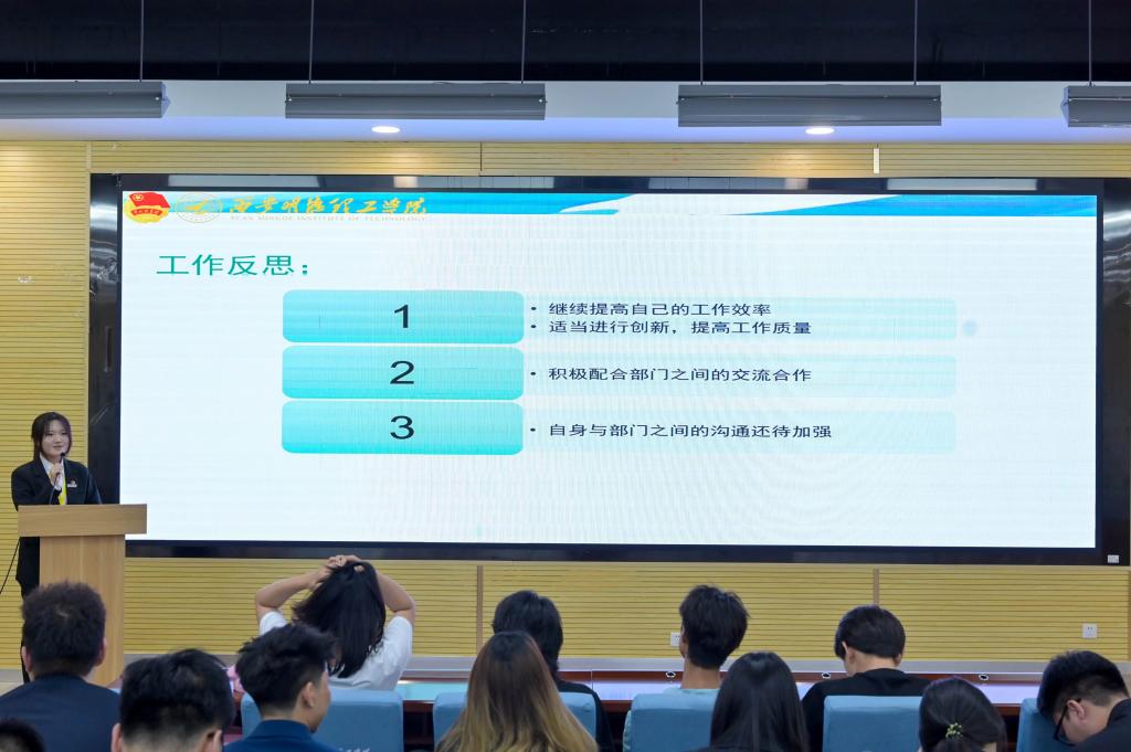 会议期间,六个部门的负责人依次上台,围绕部门情况、工作成效、纪律作风等方面,对本学期部门工作进行了全面、深入的总结。他们回顾了过去一学年在组织校园活动、服务同学需求、参与学校管理等方面所取得的成绩,分享了工作中的宝贵经验与深刻感悟;同时,也直面工作中存在的问题与挑战,深刻反思不足,并提出了切实可行的改进措施。展望未来,各负责人还对部门的发展方向作出清晰规划,展现出积极进取、勇于担当的精神风貌。
