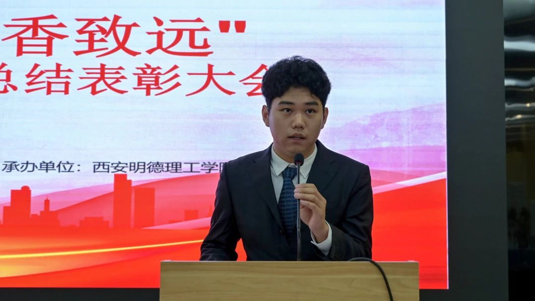 首先,校学生会工作人员代表、学术部负责人刘泽俊对本次活动进行总结。他指出,本次晨读打卡活动自启动以来,得到了全校学生的积极响应,参与人数众多。在21天的打卡过程中,同学们克服了早起的困难,坚持每日晨读,形成了良好的学习风气。刘泽俊还展示了活动期间的各项数据,如参与人数、打卡完成率等,直观地呈现了活动的成效,同时肯定了他们在活动中的积极态度和优秀表现。