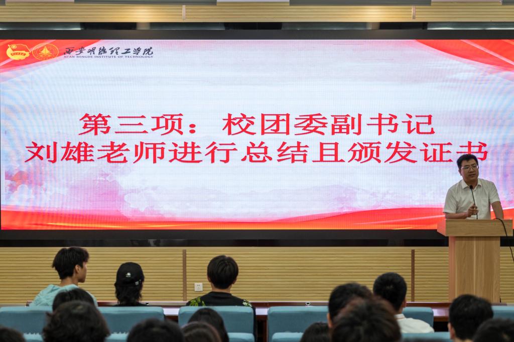 最后,校团委副书记刘雄老师进行总结发言并为获奖学生颁发证书。刘雄老师强调了自律在学习和生活中的重要性,并通过举例进行阐述。刘雄老师希望大家以这些同学为榜样,在今后的学习和生活中养成自律的习惯,通过晨读等活动不断充实自己,提升自己的综合素质。随后,刘雄老师为在晨读打卡活动中表现优秀的学生颁发了荣誉证书,对他们的努力和坚持给予了充分肯定。