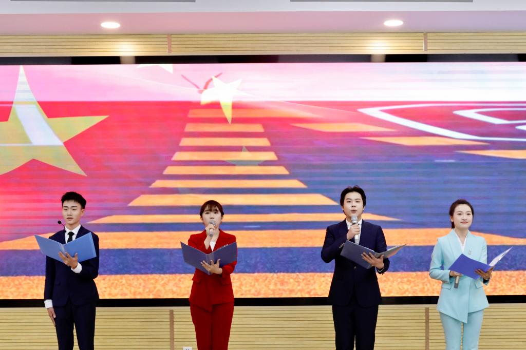 在比赛正式开始前,沣河校园广播站为大家带来了暖场节目《党旗诵》。同学们深情地朗诵,让我们了解当今新时代的大格局和党对新青年的殷切期望。随着激情高昂的团歌响起之后,主持人介绍了通过初赛、复赛层层选拔的10位参赛选手,最后宣布“学习二十大 永远跟党走 奋进新征程”演讲比赛决赛正式开始!