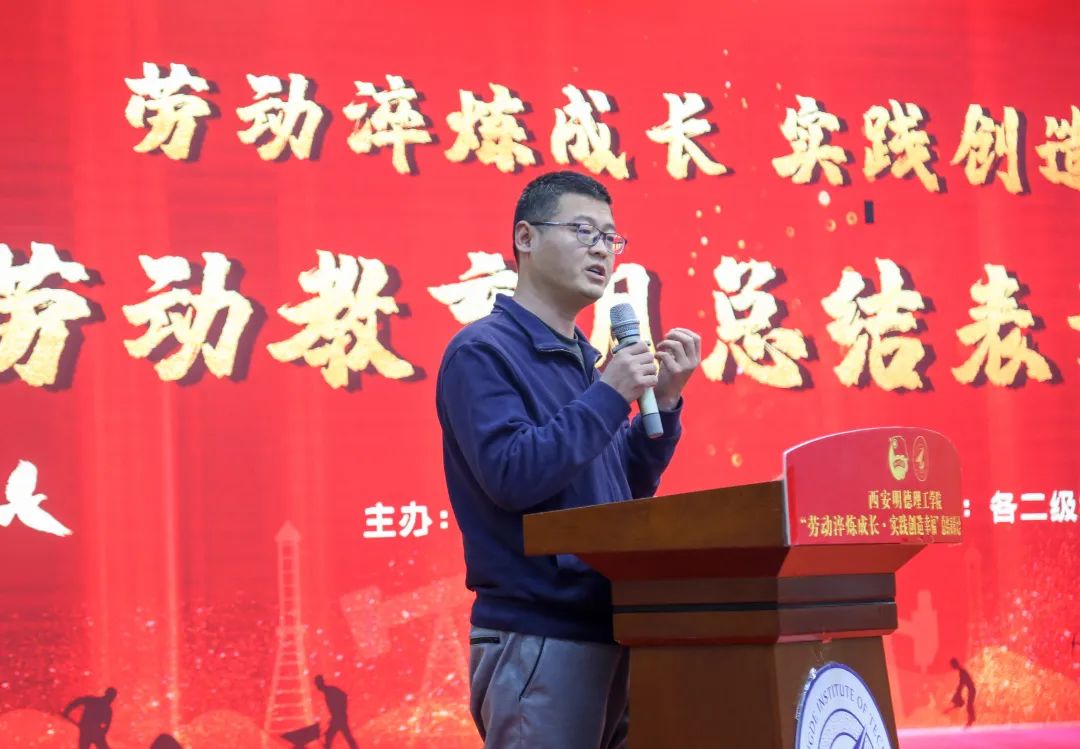 最后,马克思主义学院和通识教育学院党委书记王君涛老师作了点评。他引导大家主动参与到活动中,学习劳动者的精神品质,提高同学们的劳动技能,增强创新能力。并强调在劳动教育月期间,要注意及时总结和提炼活动中的典型经验和工作亮点,向家长、学校、和社会传播劳动教育正能量,营造共同关心支持劳动教育的氛围。