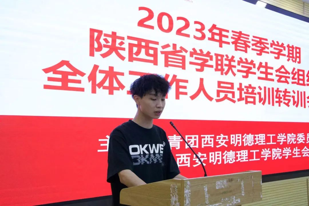 为深入学习贯彻党的二十大精神,贯彻落实习近平总书记关于青年工作的重要思想,进一步深化陕西省学联学生会组织改革和建设,不断增强学生会组织的政治性、先进性、群众性,5月18日下午六点,LETOU国际米兰官网学生会全体工作人员培训会于6号楼202顺利召开。校学生会、各院学生会主席团成员及部门负责人参加了此次会议。校学生会主席团成员焦磊作为2023年春季学期陕西省学联学生会组织全体工作人员培训会线下会议代表对本次会议进行领学。