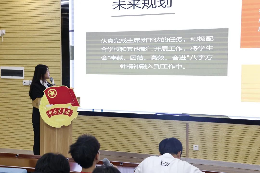 本次大会,各部门候选人们按照抽签顺序依次上台演讲。在激情昂扬的竞选演讲中,阐述了自己的工作职责和未来工作的规划,表明努力做好竞选岗位工作的信心与决心,各位候选人展示了自己在学生会一年以来的点点滴滴,一幅幅照片,见证的不仅仅是一次次的活动更是同学们辛勤的汗水。各位主席团成员也对各位候选人的答辩进行了点评以及对于后续工作的建议,并且强调工作态度、工作细节等方面的问题。